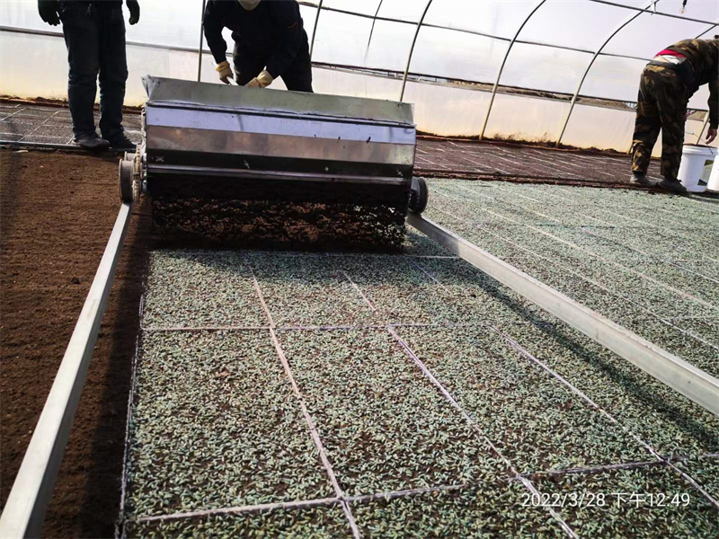 今年公司種植基地五常合作社率先采用了“超早育苗技術(shù)”,比往年播種提前10天左右,改良了育秧大棚,保證了積溫和降低播種密度,實(shí)現(xiàn)了提前進(jìn)棚育苗,秧盤(pán)擺放整齊后,自動(dòng)水稻育秧播種機(jī)和覆土機(jī)再育秧盤(pán)上輕輕走過(guò),經(jīng)過(guò)浸泡的稻花香2號(hào)原種被均勻的撒在秧盤(pán)上,覆土機(jī)再撒上一層土,一棟大鵬2000余個(gè)秧盤(pán)育苗工作就完成了。早育苗,能提高苗齡,能提前插壯秧,能提升產(chǎn)量,能提高稻花香大米的質(zhì)量和口感!